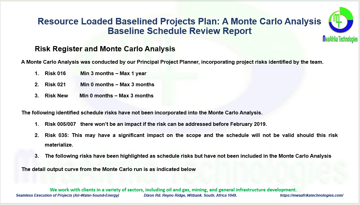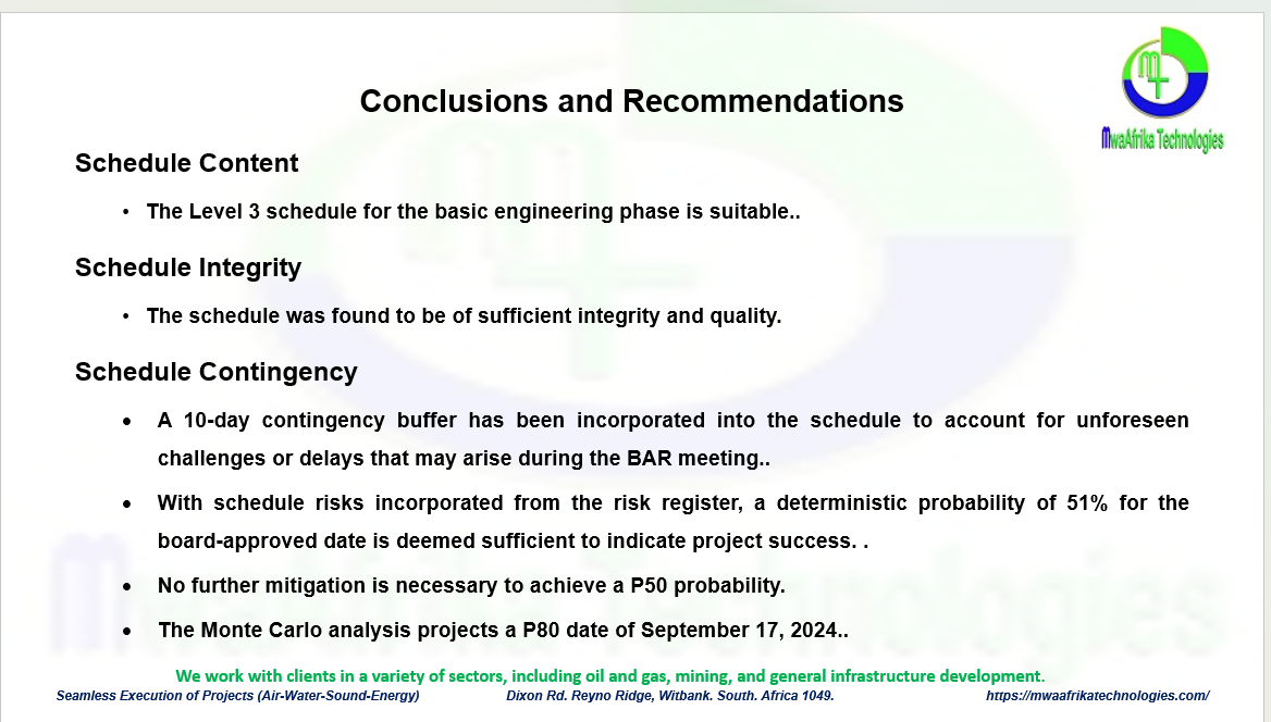 o Schedule assumptions or BoS