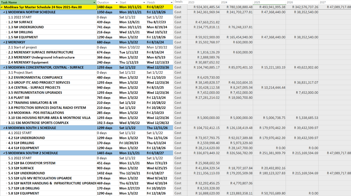 o Scope of work or any other info to help develop the schedule.